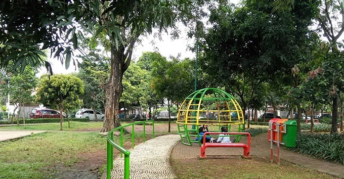 Sarana yang ada di halaman ini lumayan komplit, antara lain terdapat alun- alun basket yang terkini saja direnovasi, alun- alun futsal, jogging track, arena main anak, serta terdapat pula track spesial yang mengadopsi rancangan pengobatan dengan alat batu.