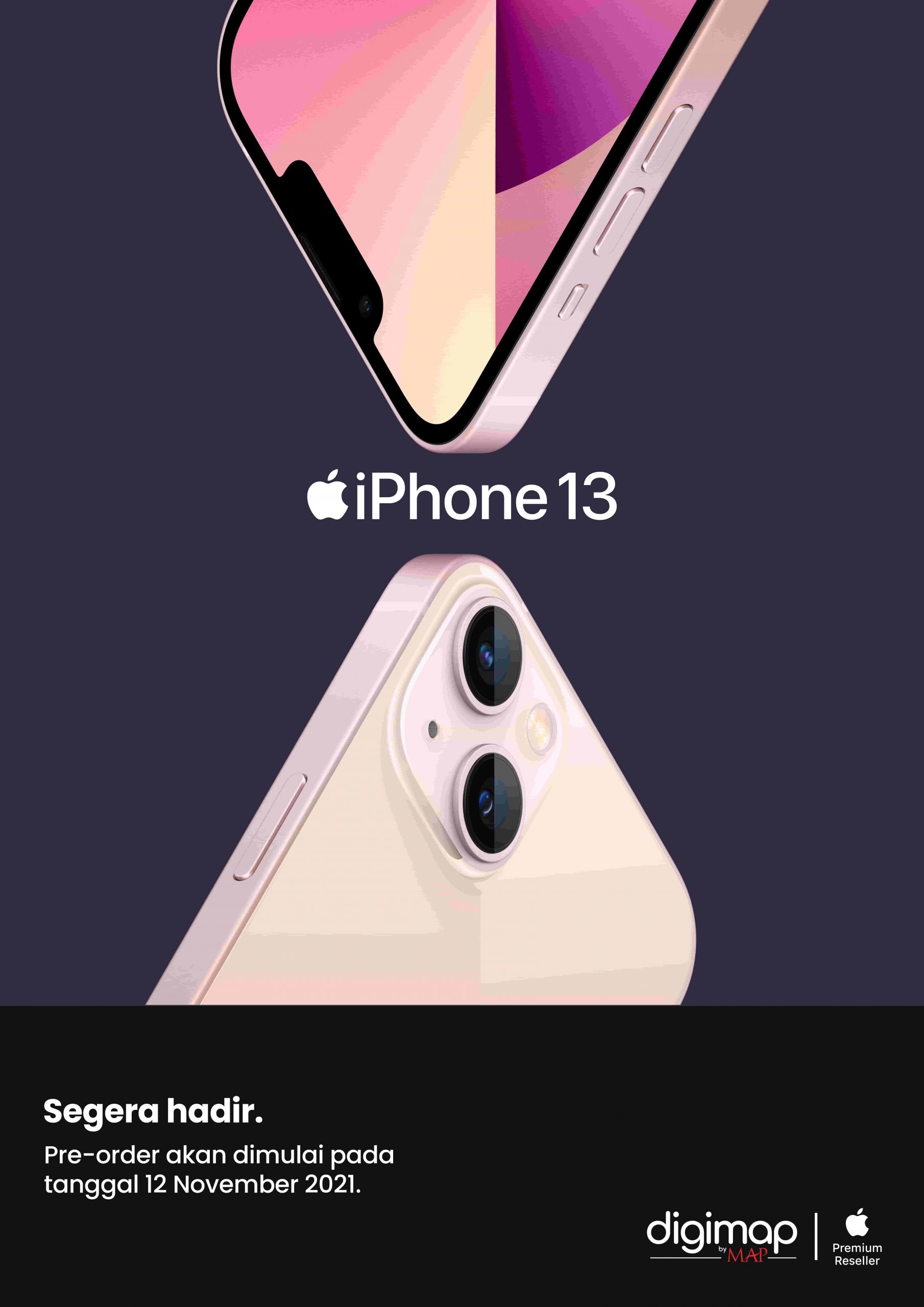 Selain seri iPhone Pro, Digimap juga akan menghadirkan iPhone 13 dan iPhone 13 mini yang inovatif dan elegan dengan sistem kamera ganda tercanggih yang pernah ada pada iPhone di 41 gerai retail Digimap di seluruh Indonesia. Didukung oleh Chip A15 Bionic rancangan Apple dengan desain yang ramping dan tahan lama, iPhone 13 and iPhone 13 mini akan hadir dalam lima warna baru yang cantik — pink, blue, midnight, starlight, dan RED — di 41 gerai retail Digimap di seluruh Indonesia. (vay)