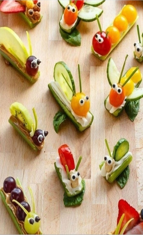 Buat kreasi dengan mengembangkan imajinasi anak, hingga tercipta ragam serangga lucu dari sajian salad yang yummy.