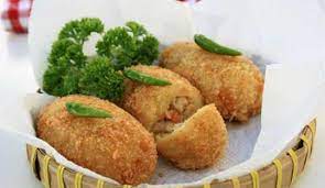 5. Panaskan minyak di atas api lagi, goreng kroket sampai cokelat kebesaran. Ambil, tiriskan. Suguhkan.