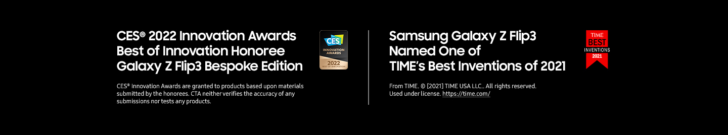 Melalui peluncuran Galaxy Z Flip3 5G, Samsung telah menemukan titik yang pas, terbukti dari reaksi positif konsumen dan para tech enthusiast terhadap inovasi, kesiapan teknologi, ketahanan, serta style dari perangkat Galaxy Z Flip3 5G. Kombinasi inilah yang akhirnya membuat TIME Magazine menobatkan Galaxy Z Flip3 5G sebagai salah satu dari “The 100 Best Inventions of 2021,” yang dipenuhi daftar kreasi-kreasi yang paling groundbreaking dari seluruh dunia tahun ini–sebuah pencapaian yang berhasil diraih oleh Samsung setelah tiga generasi inovasi foldables.